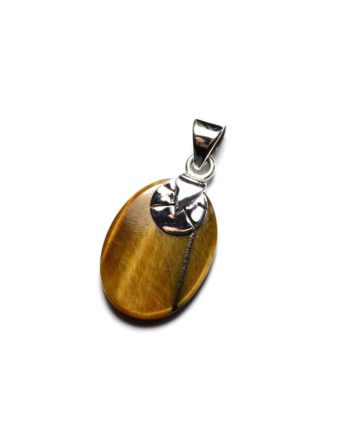 Pendentif Argent 925 et Pierre - Ovale 20x15mm Oeil de Tigre - (ref PE107)