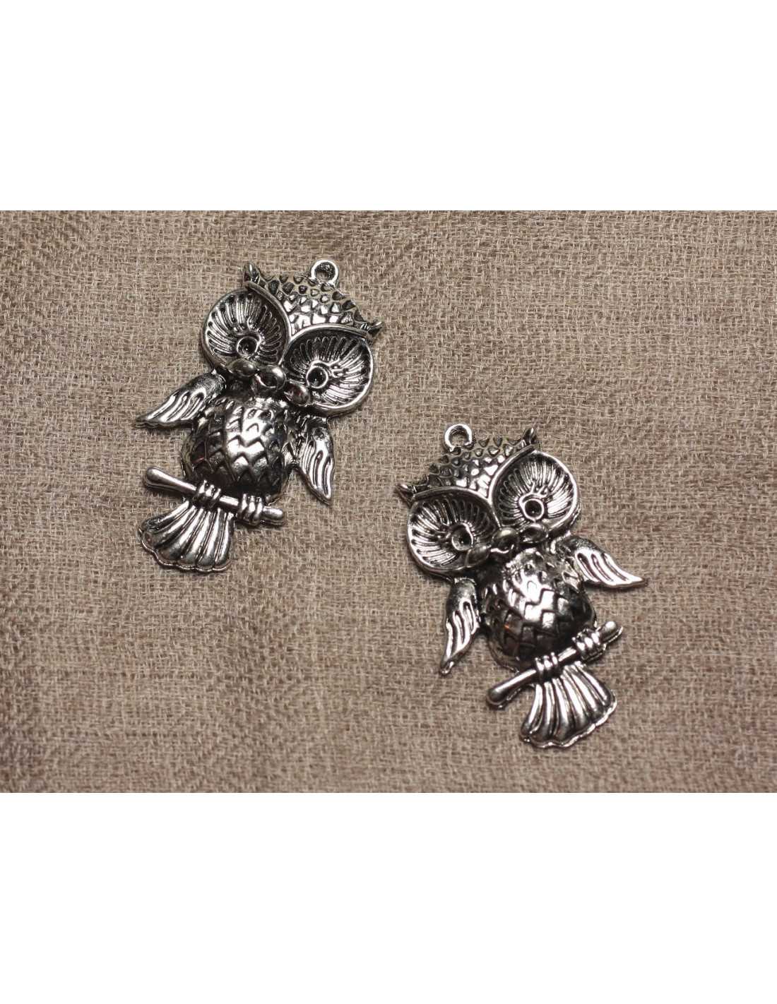 Pendentif Breloque Métal Argenté Rhodium Chouette 43mm 4558550026675