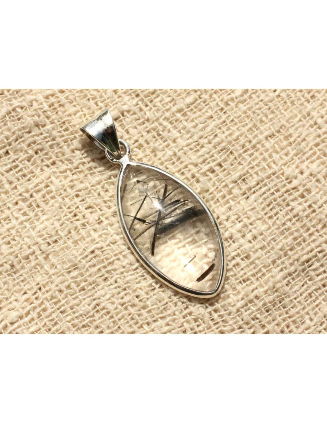 N9 - Pendentif Argent 925 et Pierre - Quartz Tourmaline Marquise 39x18mm