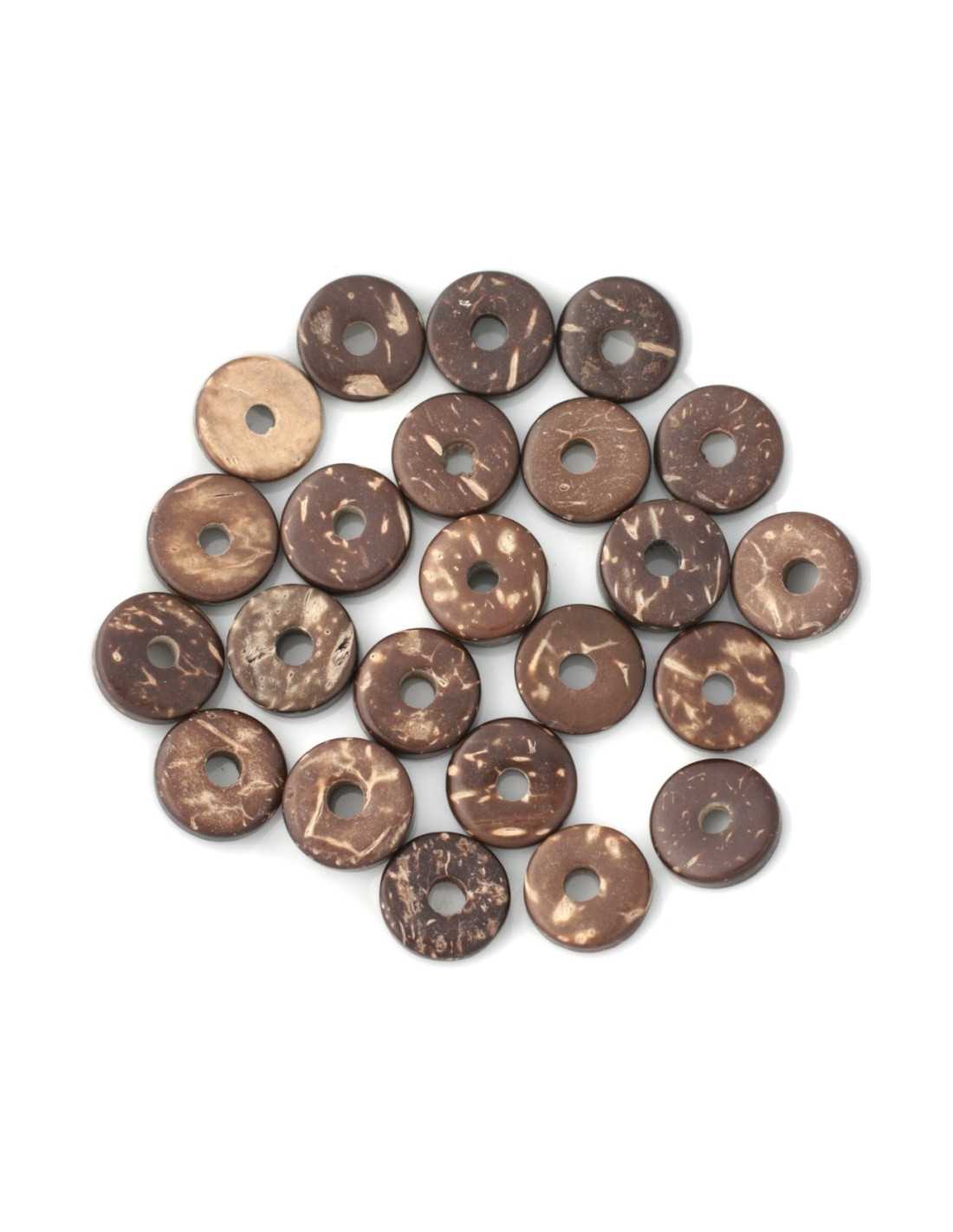 20pc - Perles Donuts Bois de Coco Rondelles 12mm Marron