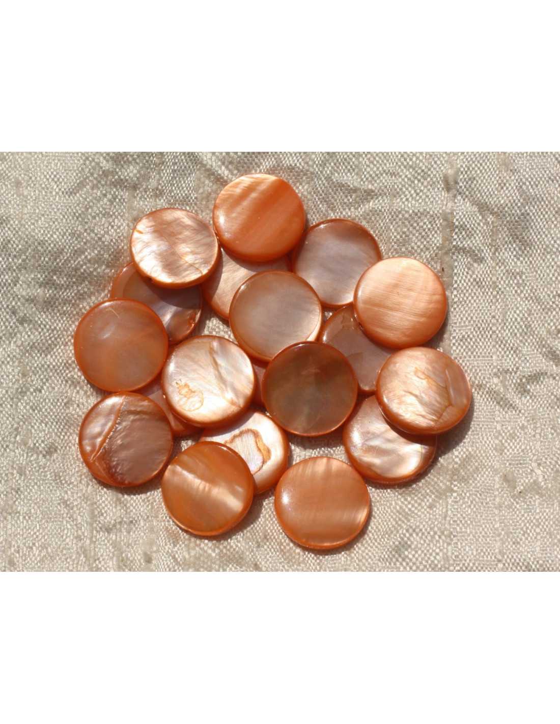 Fil 39cm 24pc environ - Perles Coquillage Nacre Palets Ronds plats 14-15mm Orange
