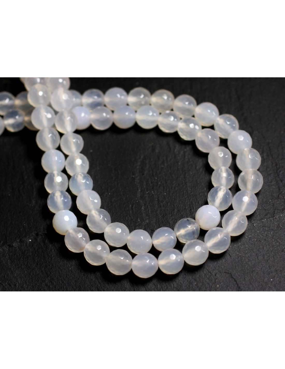 Fil 39cm 46pc env - Perles de Pierre - Agate blanche Boules facettées 8mm