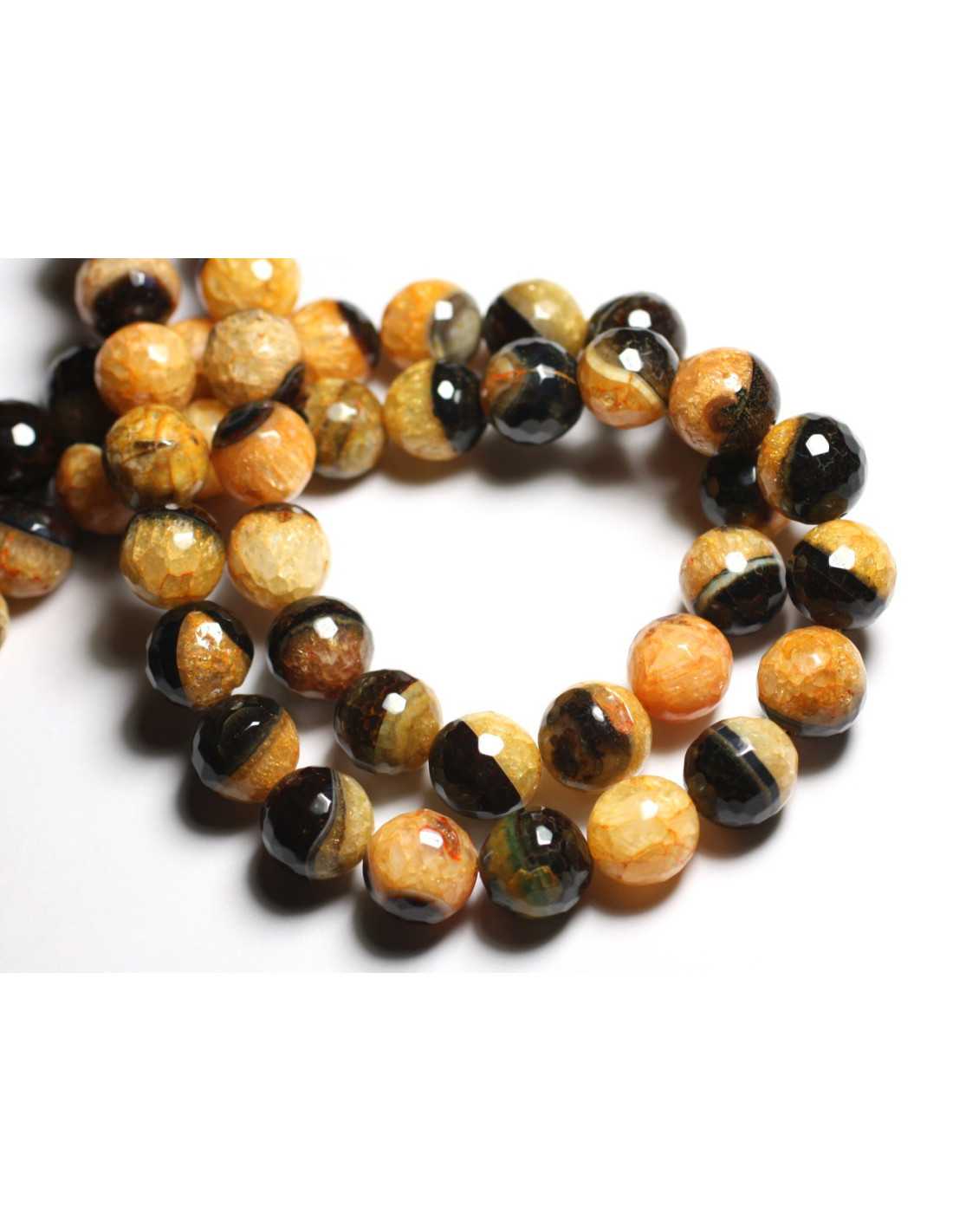 Fil 39cm 26pc env - Perles Pierre - Agate Quartz Boules Facettées 14mm Noir Jaune Orange Safran