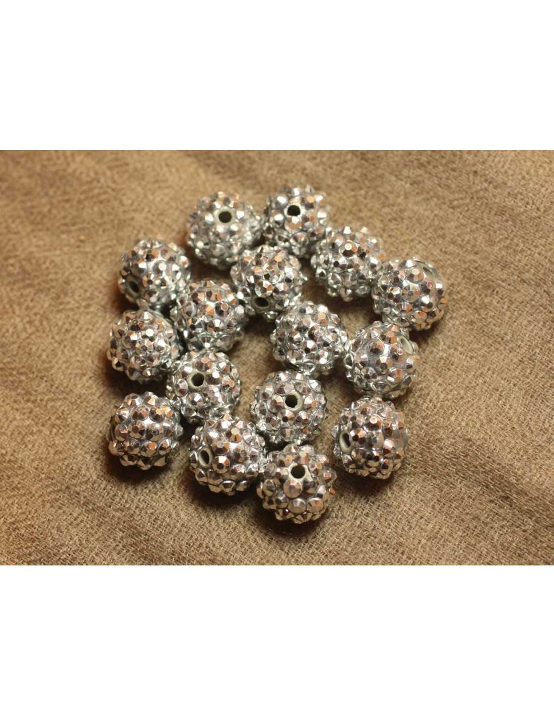 5pc - Perles Shamballas Résine 14x12mm Argenté 4558550026316
