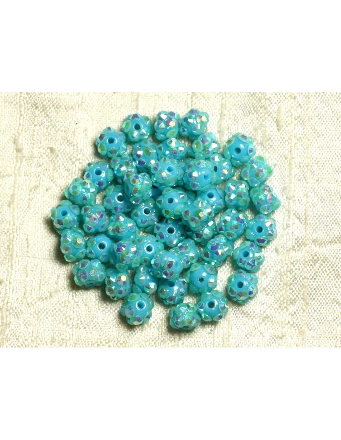 10pc - Perles Shamballas Résine 8x5mm Bleu Turquoise et Multicolore