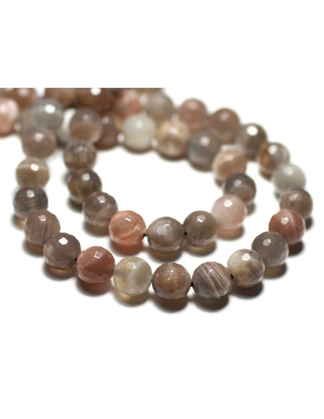 Fil 39cm 46pc env - Perles de Pierre - Pierre de Lune Boules Facettées 8mm blanc gris rose irisé