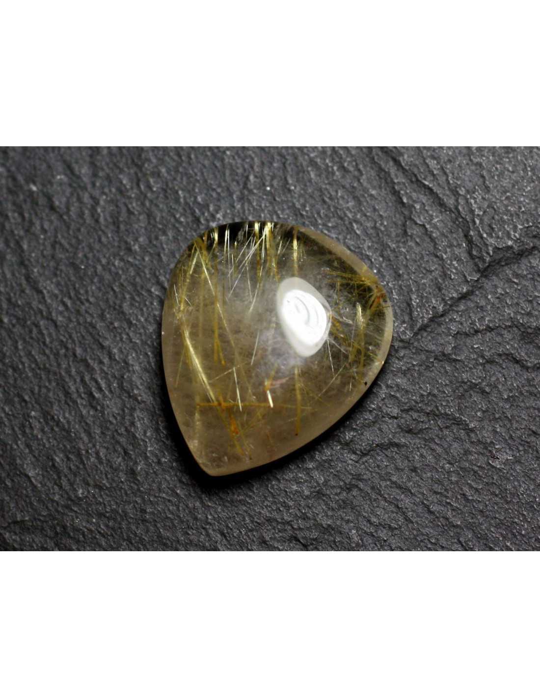 N54 - Cabochon Pierre - Quartz Rutile doré Goutte 22x19mm - 8741140002647