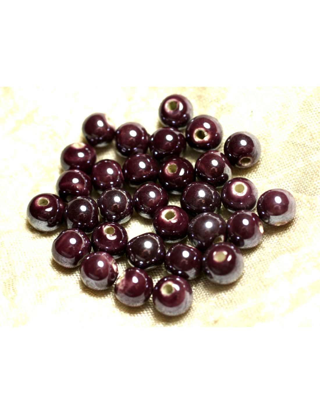 10pc - Perles Ceramique Porcelaine Boules 8mm Violet Prune - 4558550011374