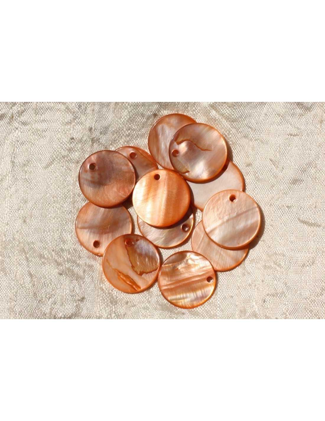 10pc - Breloques Pendentifs Nacre Ronds 20mm Orange