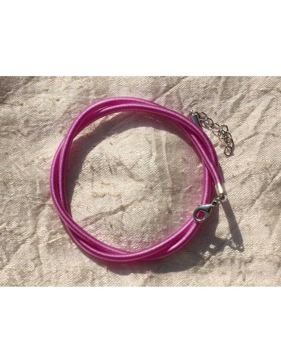 1pc - Collier Tour de cou Soie 3mm Rose Fuchsia 46cm