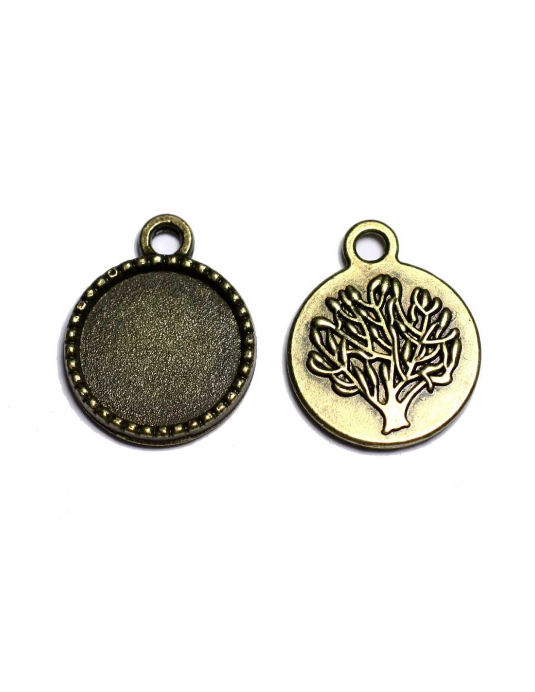10pc - Supports Pendentifs Métal Bronze Arbres pour Cabochons Ronds 14mm - 8741140003583
