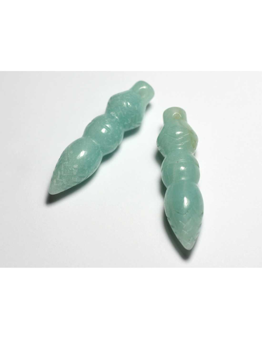 1pc - Perle Pendentif Pendule egyptien Thot gravé Pierre 46mm Amazonite bleu vert turquoise blanc - 7427039743617