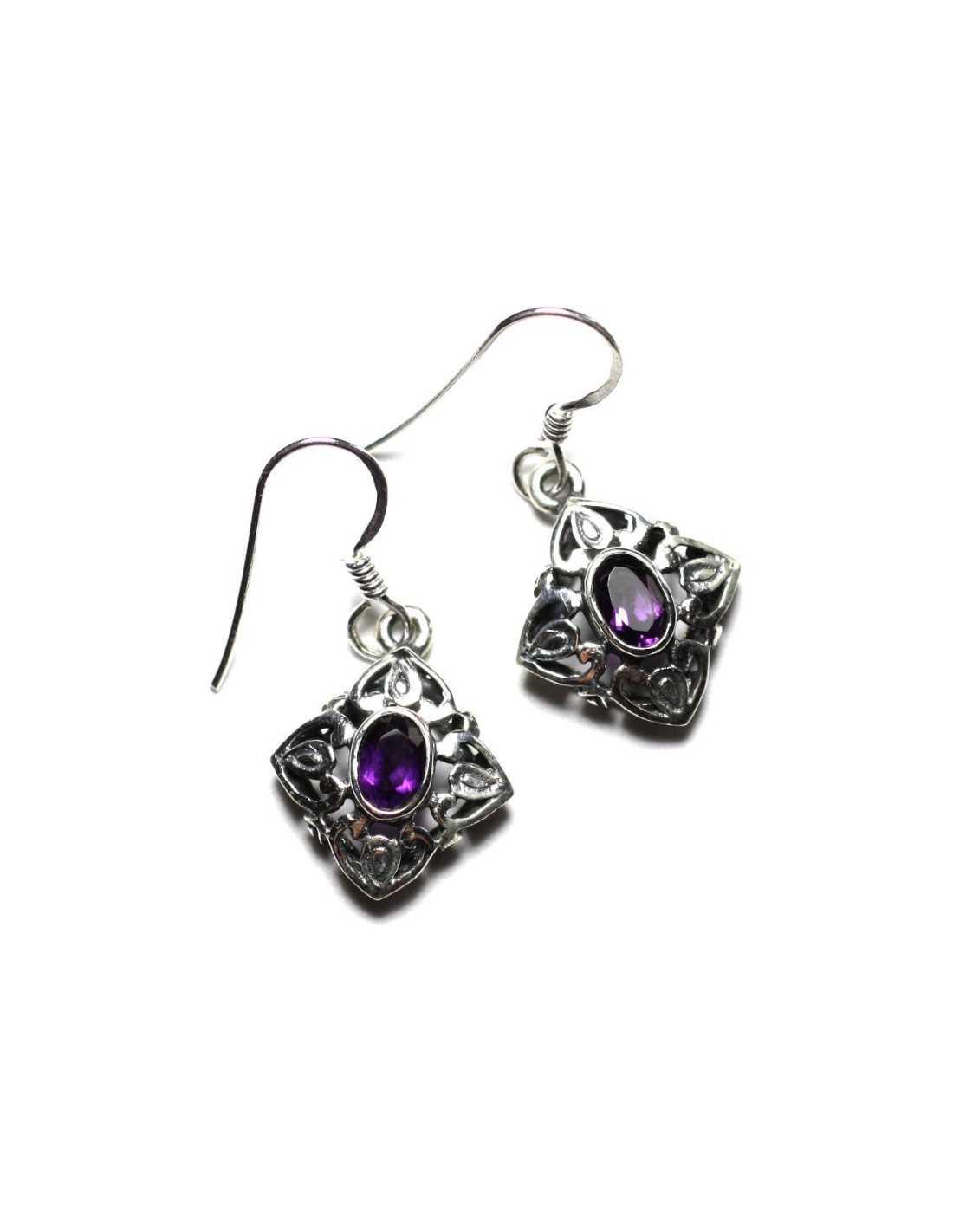BO235 - Earrings Silver 925 and Stone - Diamonds Filigree Arabesques 16mm Amethyst