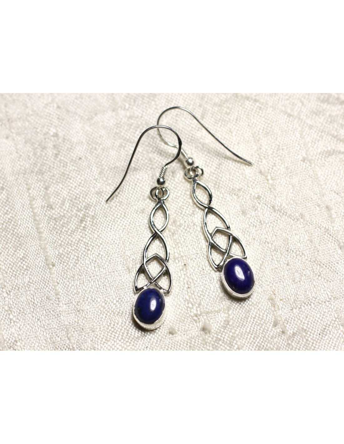 BO241 - 925 Silver and Stone Lapis Lazuli Celtic Knot Earrings 36mm