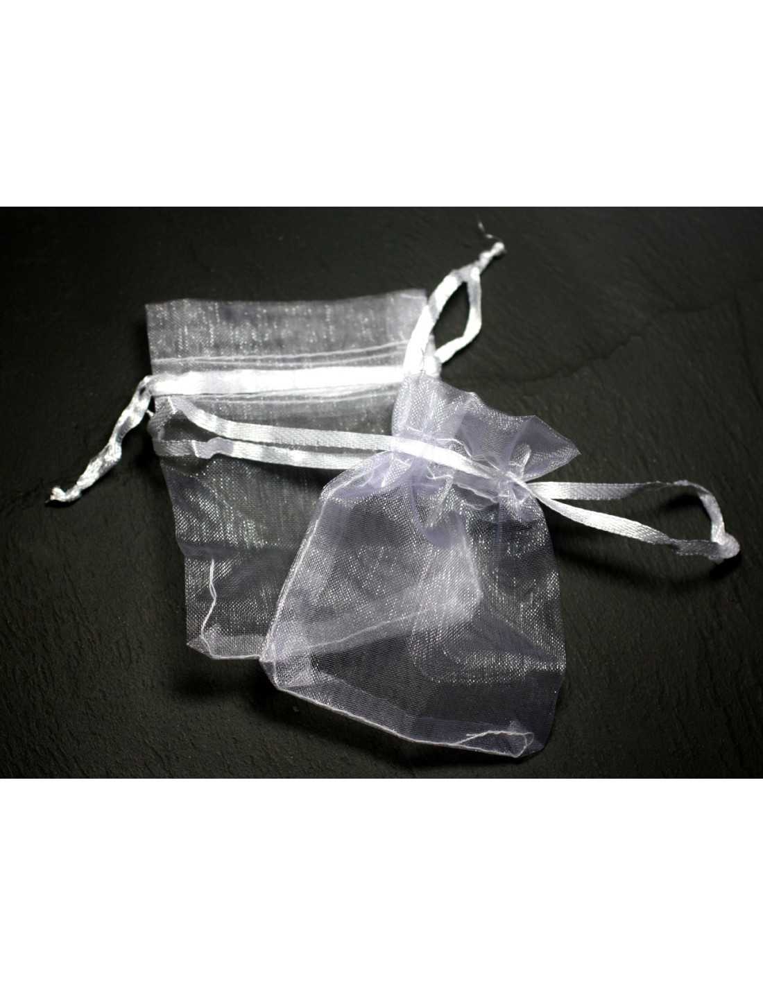 20pc - Sacs Pochettes Cadeaux Bijoux Tissu Organza 9x7cm Blanc - 8741140023086
