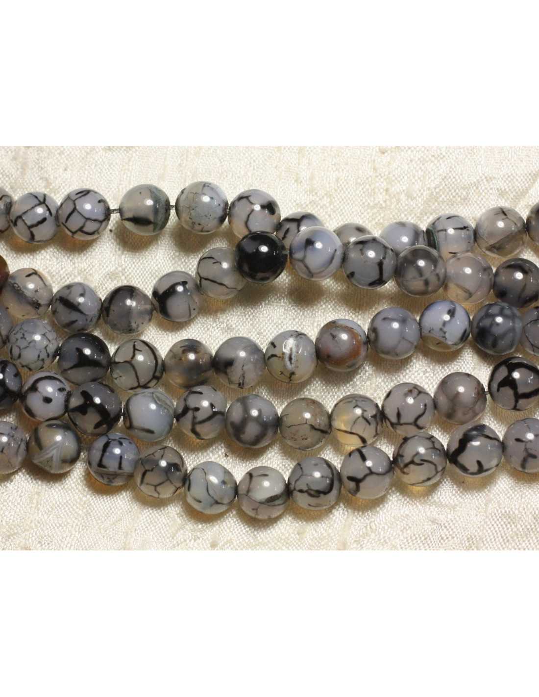 Thread 39cm - Gray and Black Dragon Vein Agate Stone Beads 10mm Balls Natural tinted semi-precious stone Color Gray, Black, transparent Ball shape Dimensions 10mm approximately Drilling dimension approximately 1mm Sold by thread of 39cm Approximately 36 Beads per thread