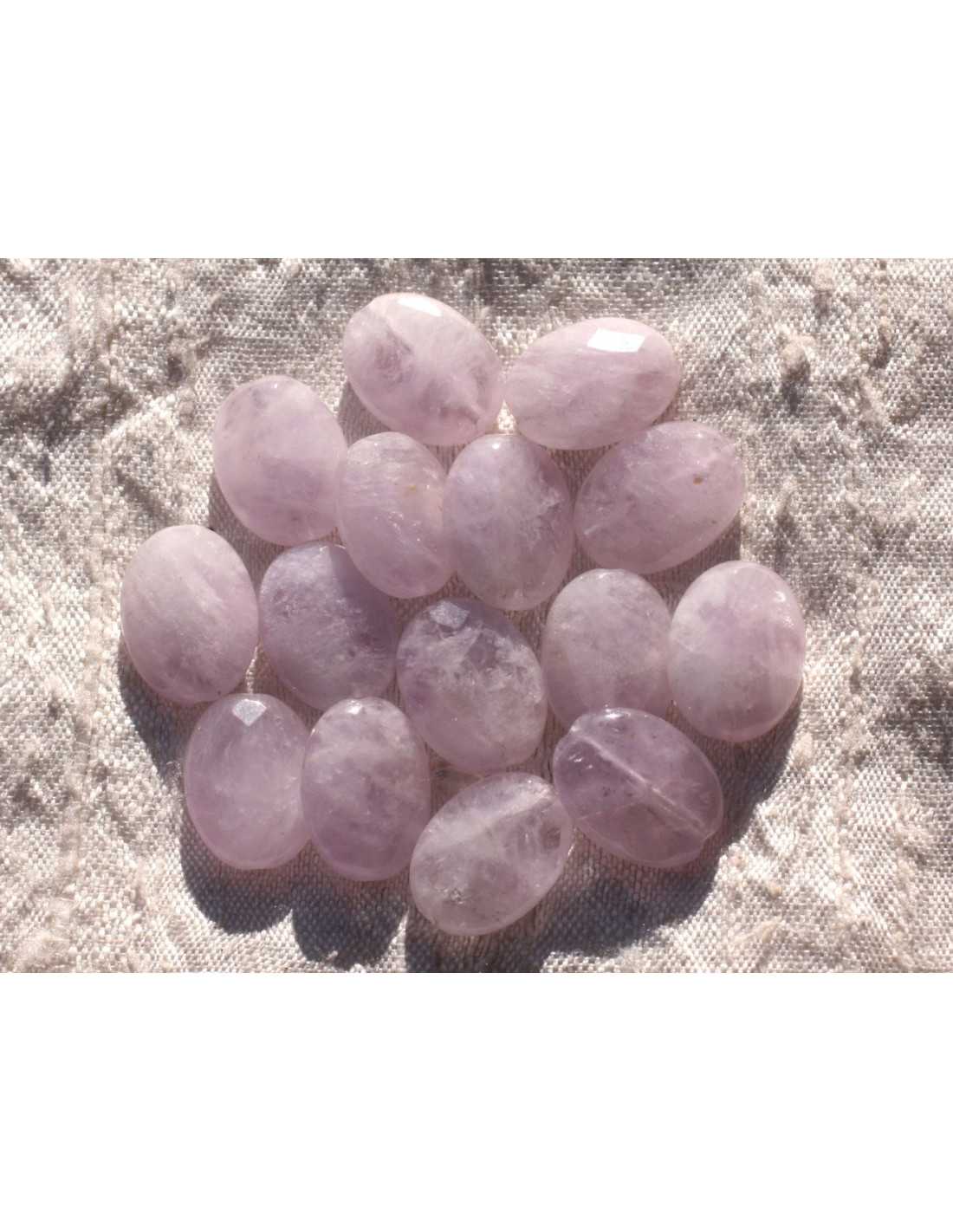Thread 39cm - Lavender Amethyst Stone Beads Natural semi-precious stone Color white, mauve, transparent Shape Faceted ovals drilled in the length Dimensions Length 16mm x Width 12mm x Thickness 6mm approximately Drilling dimension 1mm approximately Sold by thread of 39cm Approximately 23 beads per wire