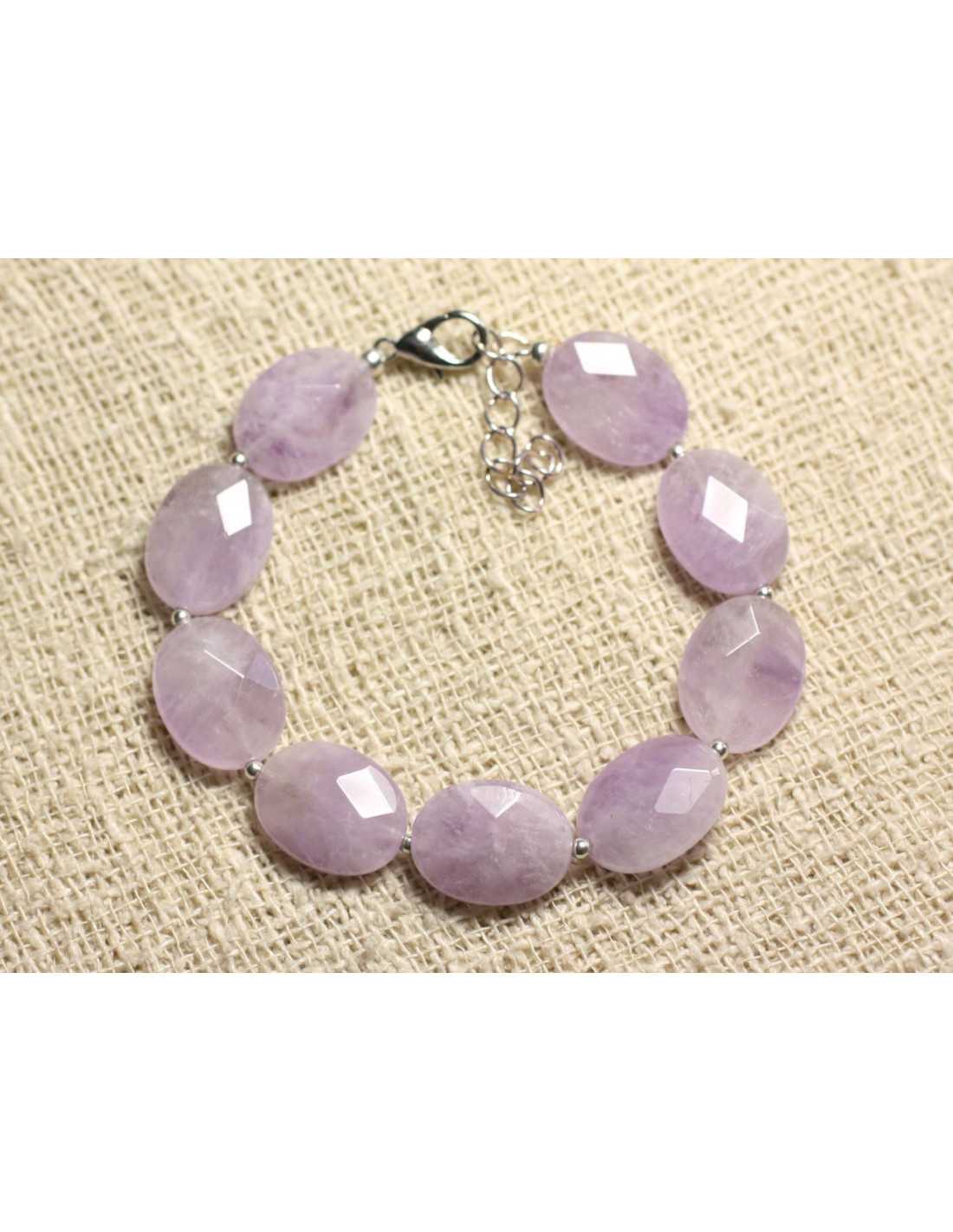 Bracelet 925 Silver and Light Amethyst Stone Natural semi-precious stone Mauve color, translucent Faceted Oval Beads Dimensions approx. 16x12mm Sterling Silver spacer beads round 2mm Bracelet made on strong and resistant nylon thread Lobster clasp and Chain in 925/1000 Silver Length 17cm + 4cm silver chain