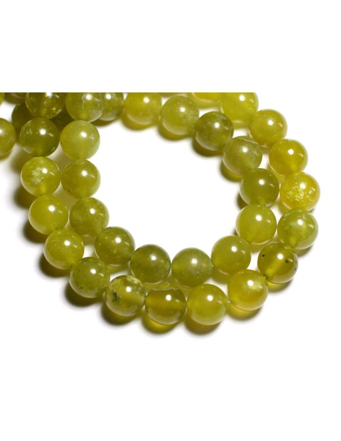 Thread 39cm - Pearls of Stone Jade Olive Natural semi precious stone Color Light green, olive, transparent Shape Balls Dimensions approximately 10mm Drilling dimension approximately 0.8mm Sold by 39cm thread Approximately 37 Pearls per thread