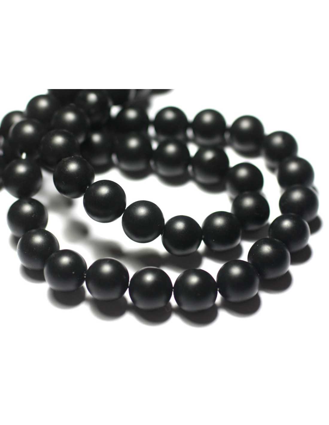 10pc - Stone Beads - Matte black sandblasted frosted waxed onyx Balls 10mm