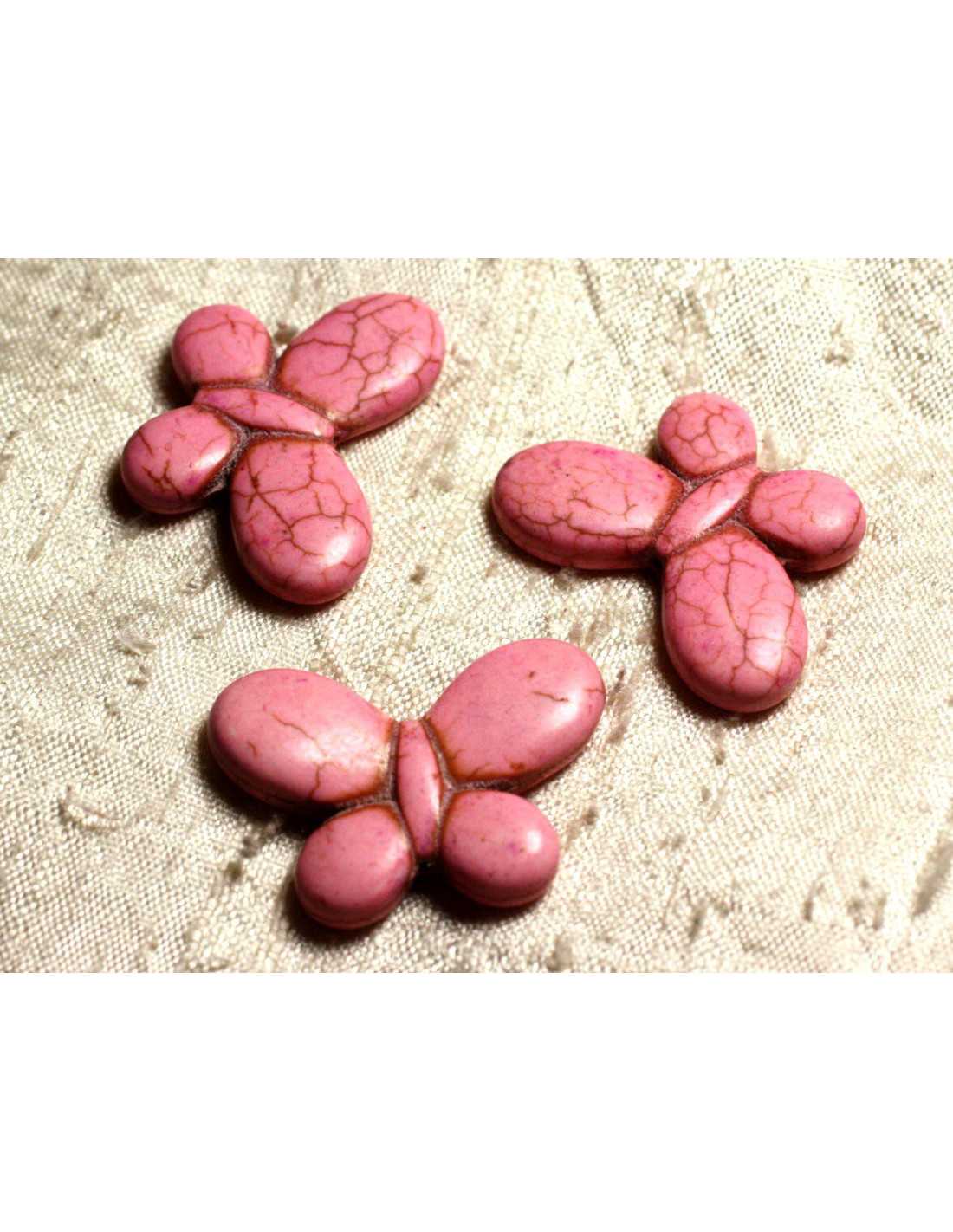 Thread 39cm - Turquoise Stone Beads Reconstituted Synthesis Butterflies 35mm Synthetic stone Color Light pink Pastel Shape Butterflies pierced from top to bottom, in the width Dimensions Length 35mm x Width 25mm x Thickness 6mm approximately Drilling dimension 1mm approximately Sold by thread of 39cm Approximately 21 beads per thread