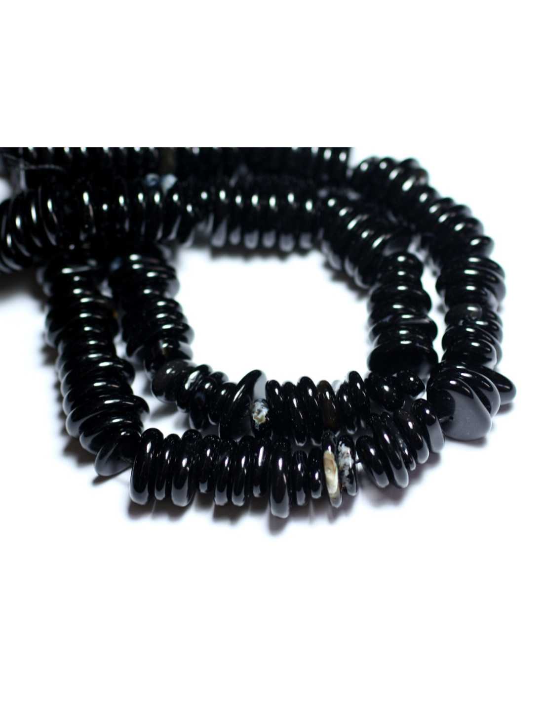 Thread 39cm - Stone beads Onyx black Natural semi precious stone Color black Shape Chips Palets Washers Dimensions Diameter 10-15mm x Thickness 2-4mm approximately Drilling size approximately 1mm Sold by wire of 39cm Approximately 110 beads per wire