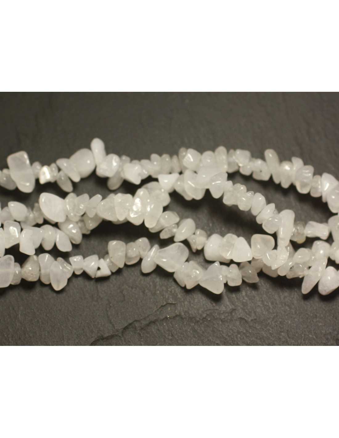 Thread 89cm - White jade stone beads Tinted natural semi precious stone Color white, transparent Shape Seed beads Chips Dimensions approx. 5-10mm Drilling size approx. 1mm Sold by thread of 89cm Approximately 240 beads per thread
