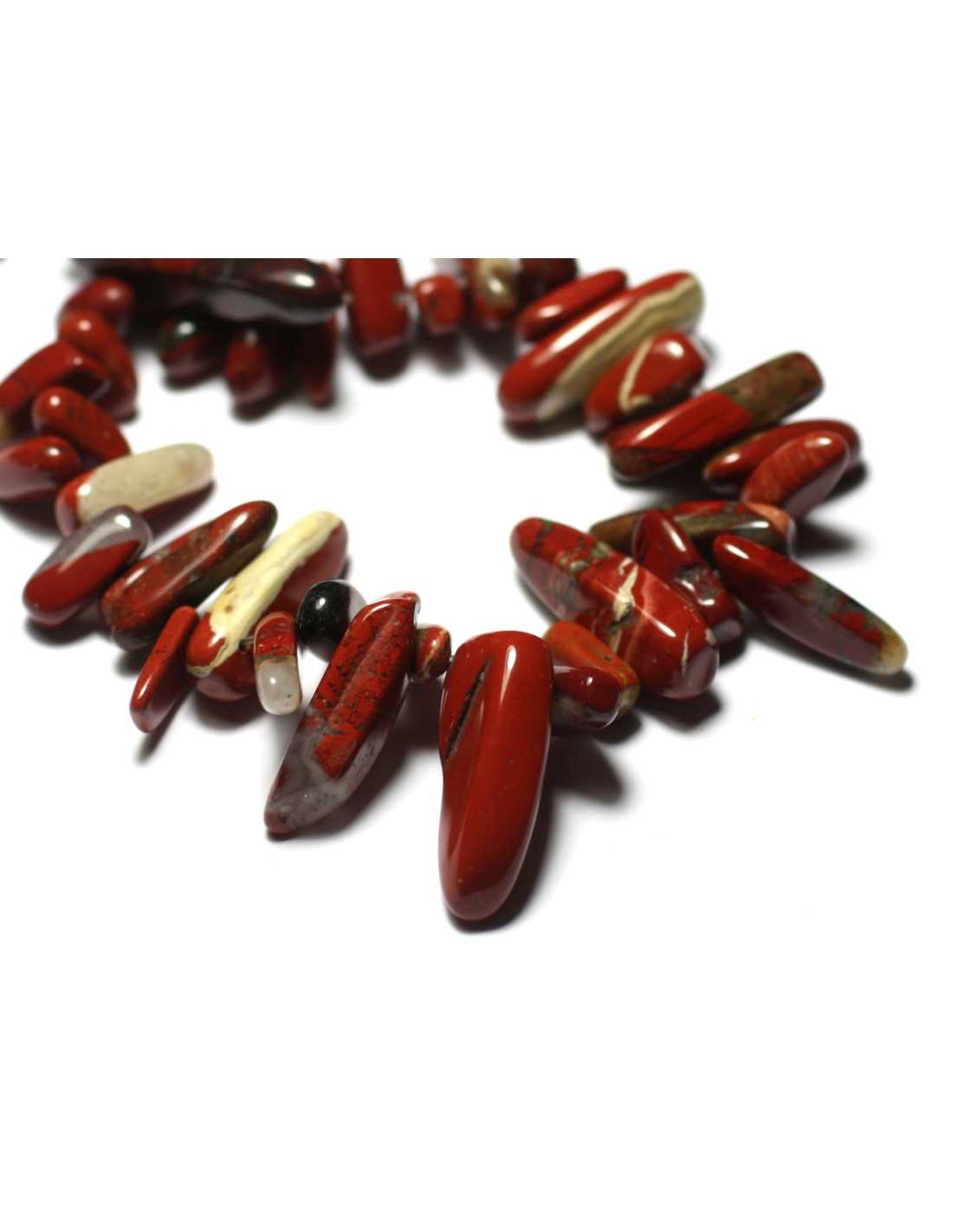 Fil 39cm 85pc env - Perles de Pierre - Jaspe Rouge Poppy Rocailles Chips Batonnets 12-25mm