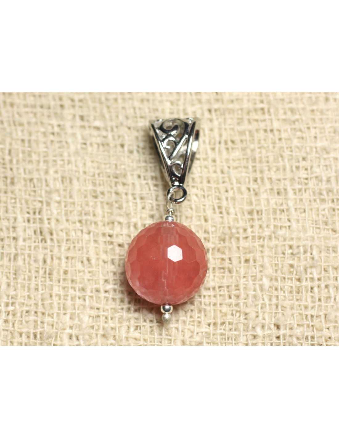 Semi-precious Stone Pendant Cherry Quartz Natural semi-precious stone Transparent pink color Faceted Round Pearl Dimension 14mm Filigree Bead in Rhodium-plated quality Silver Metal Dimensions 11 x 6 mm Pendant sold with an Organza or waxed cotton necklace Customization possible with stones and colors of your own choice