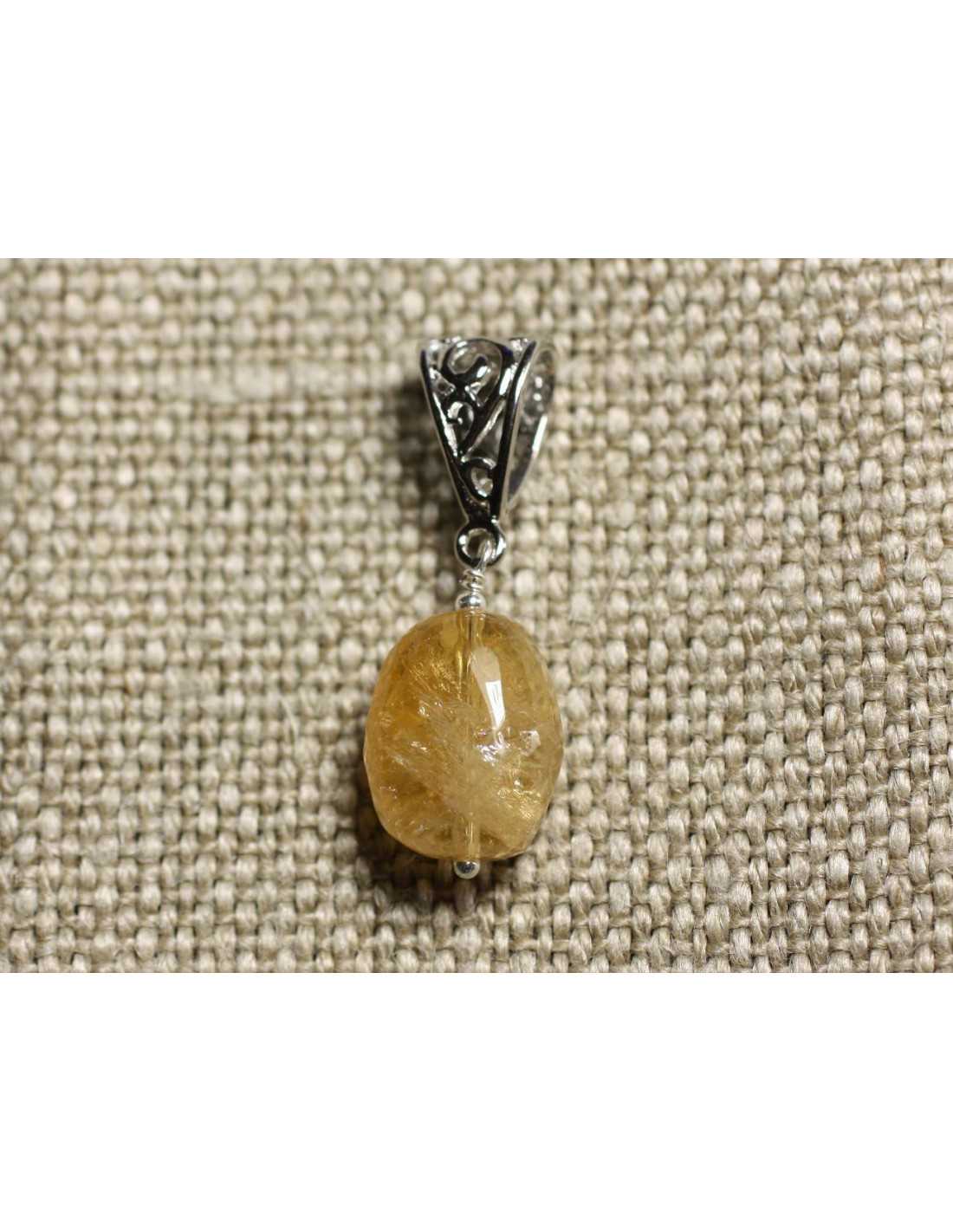 Faceted Olive Citrine Stone Pendant Natural semi-precious stone Color white, light yellow, translucent Faceted Olive Pearl Dimensions Length 16mm x Width 13mm approximately Filigree Rhodium-plated Silver Metal Bead Dimensions 11 x 6mm Pendant associated with a necklace in waxed cotton, or organza, color your choice, thank you for telling me your preference (white, black, blue, green, etc.). Personalization possible with stones of your choice!