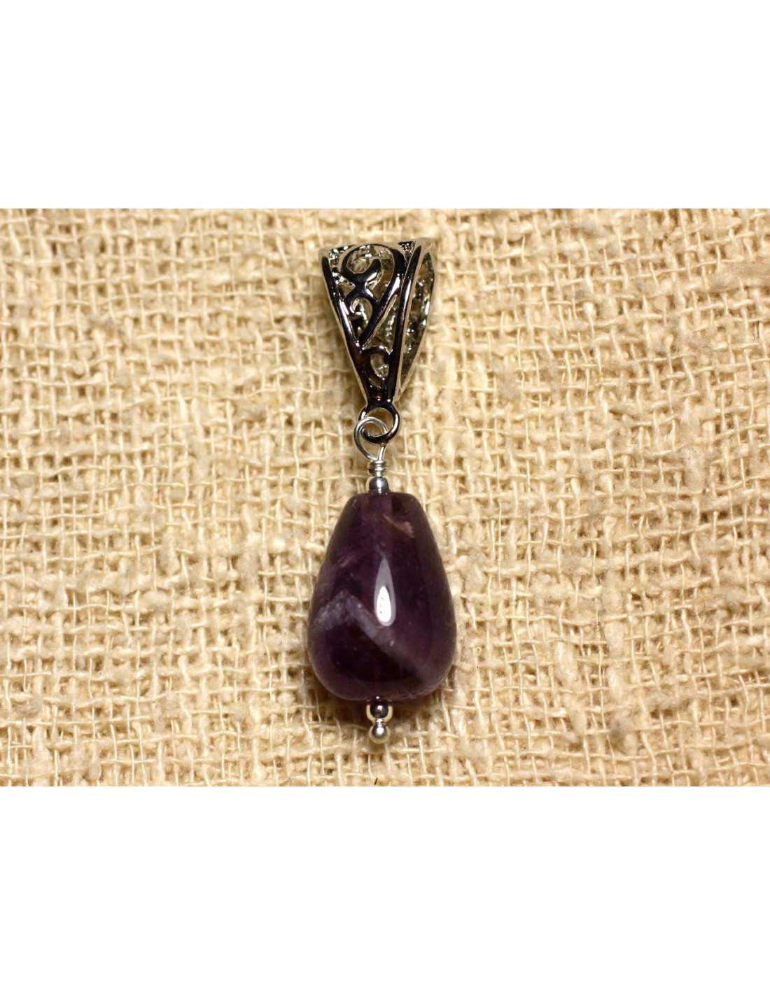 Semi-precious Stone and Silver Metal Rhodium Pendant Amethyst Round drop 14x10mm Natural semi-precious stone Color purple, white, transparent Pearl Round drop Size approx. 14 x 10 mm Hanger Filigree Rhodium-plated Silvery Metal Dimensions 11 x 6 mm Pendant sold with an Organza or Cotton necklace waxed Customization possible with stones and colors of your choice!