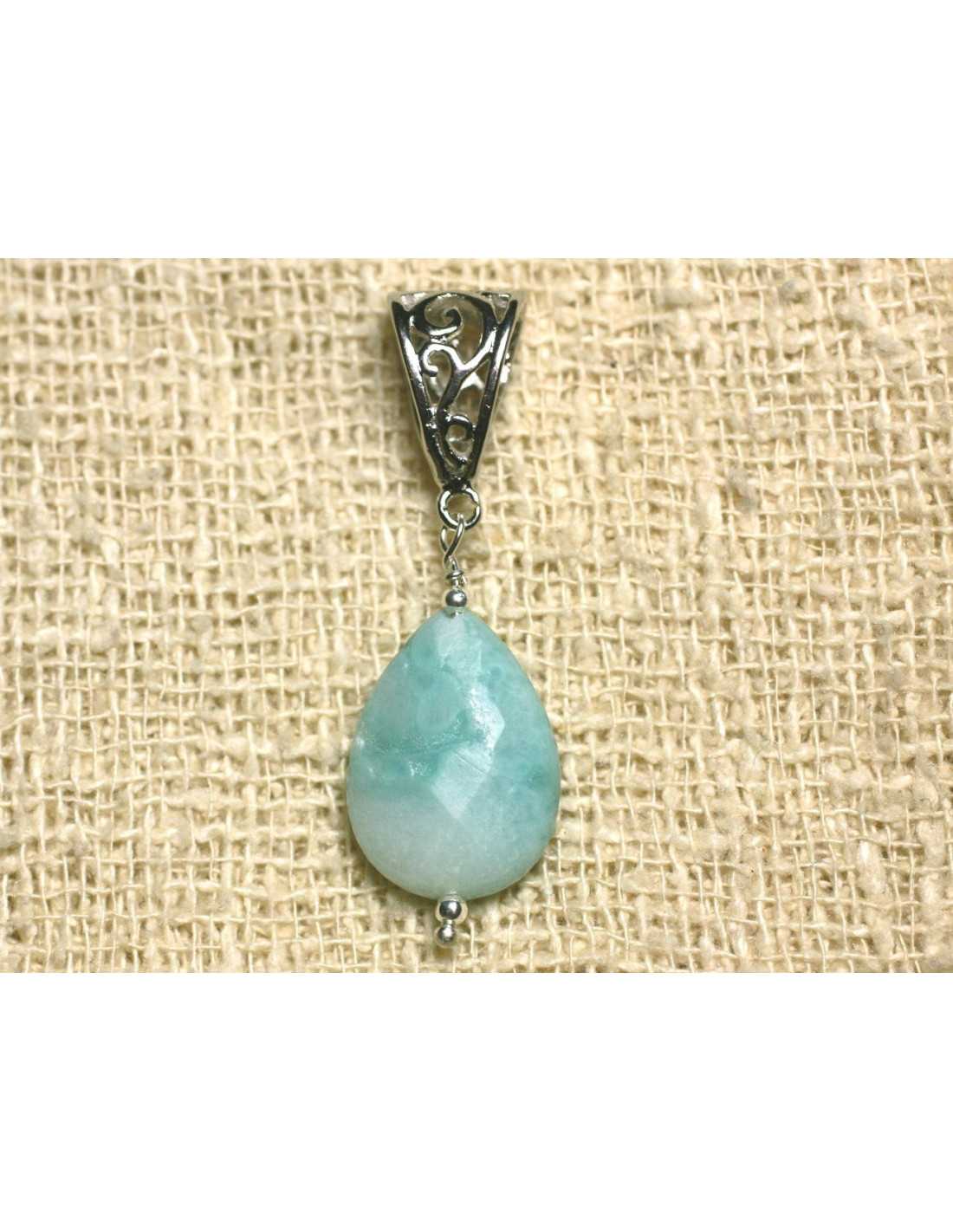 Semi Precious Stone Pendant - Amazonite Faceted Drop 17x13mm