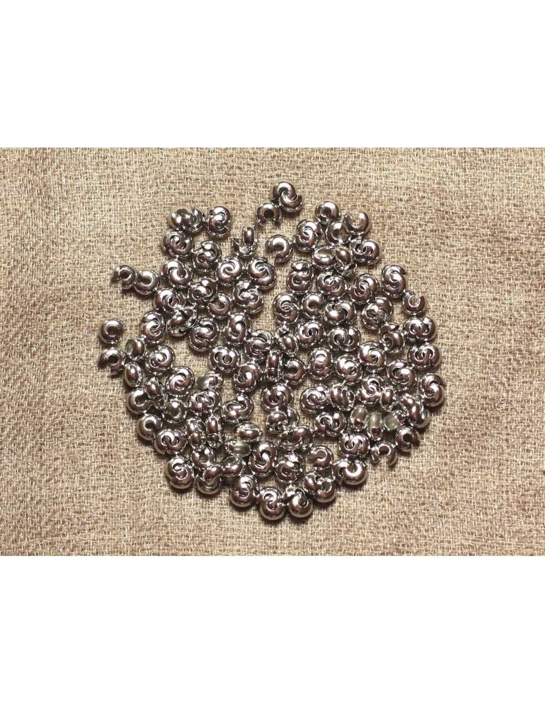 30pc - Cache Perles à écraser Métal Argenté Rhodium 4mm 4558550034748