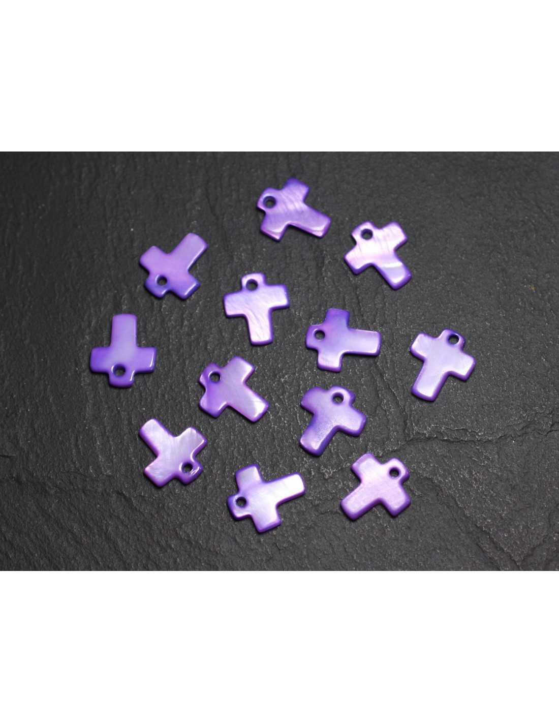 10pc - Pearl Charms Pendants Mother of Pearl Cross 12mm Purple 4558550015440