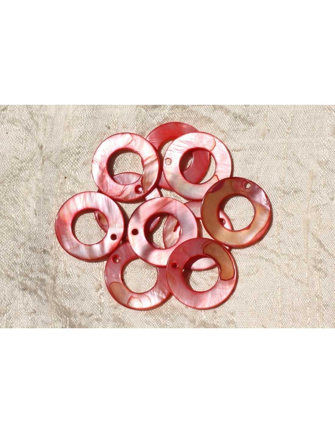 10pc - Mother of Pearl Pendants Charms Circles 25mm Red Pink 4558550019196