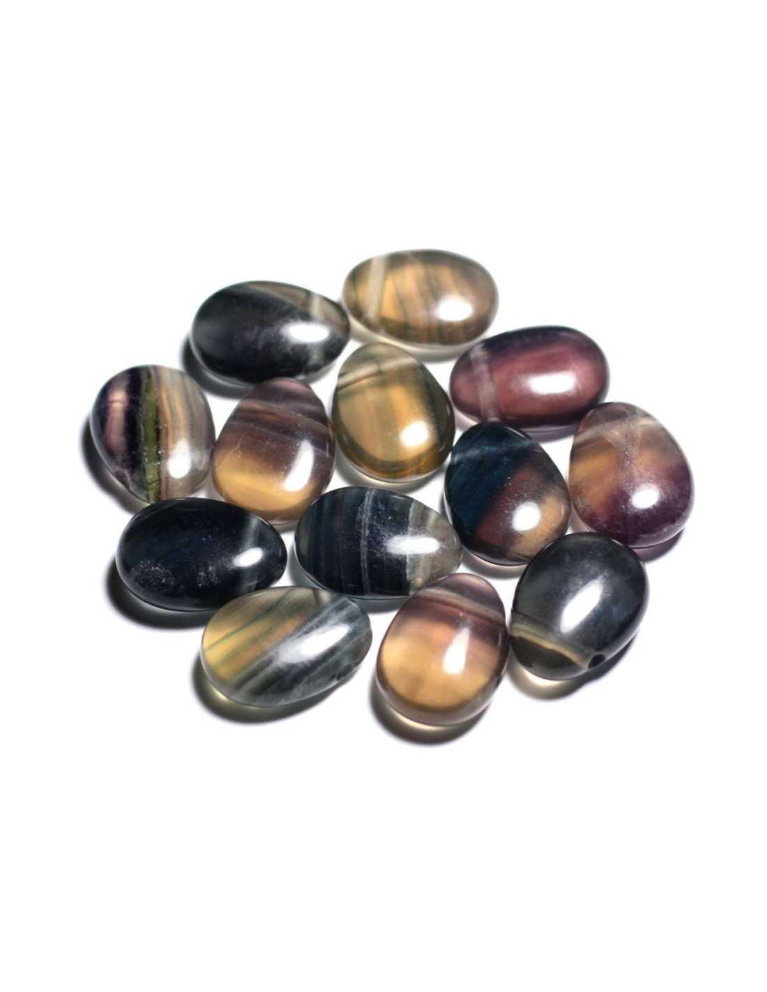 Necklace Pendant Semi-precious stone Fluorite Multicolored Drop 25mm Natural semi-precious stone Color yellow, green, purple, pink, transparent, with inclusions Shape Drop Dimensions Length 25mm x Width 18mm x Thickness 10mm Drilling dimension 3mm approximately Waxed cotton cord Size adjustable thanks to a practical and solid sliding closure Choice of colors The colors and patterns may vary depending on the stone