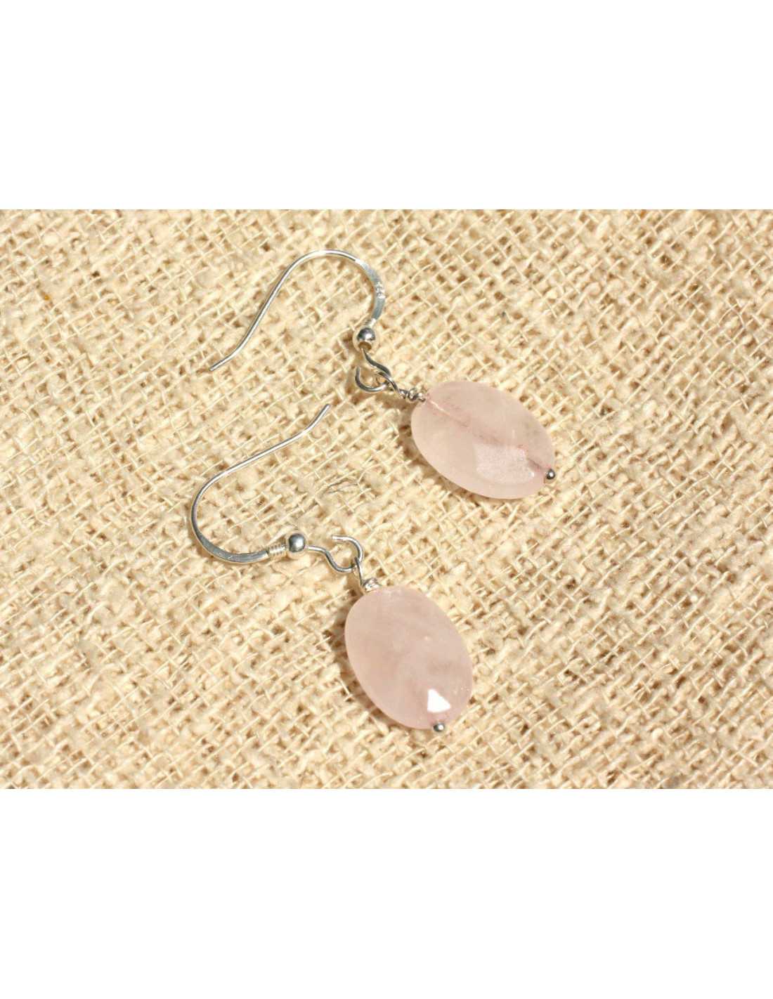 Earrings Silver 925 and Stone - Rose Quartz Faceted Oval 14x10mm