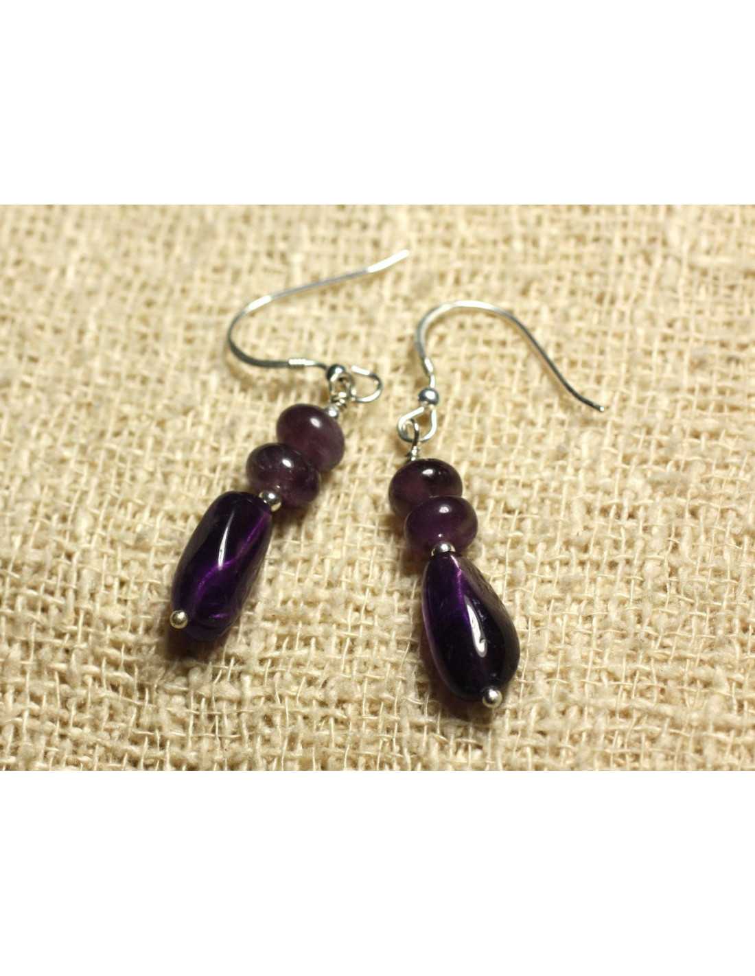 Earrings Silver 925 and semi-precious stone Amethyst Natural semi-precious stone Color purple, transparent Olive beads Dimensions approx. 13 x 7 mm Round beads Dimensions approx. 6 x 4 mm Round spacer beads in 925/1000 Silver Dimensions approx. 2 mm Silver hooks 925 / 1000 Loop length approx. 28mm