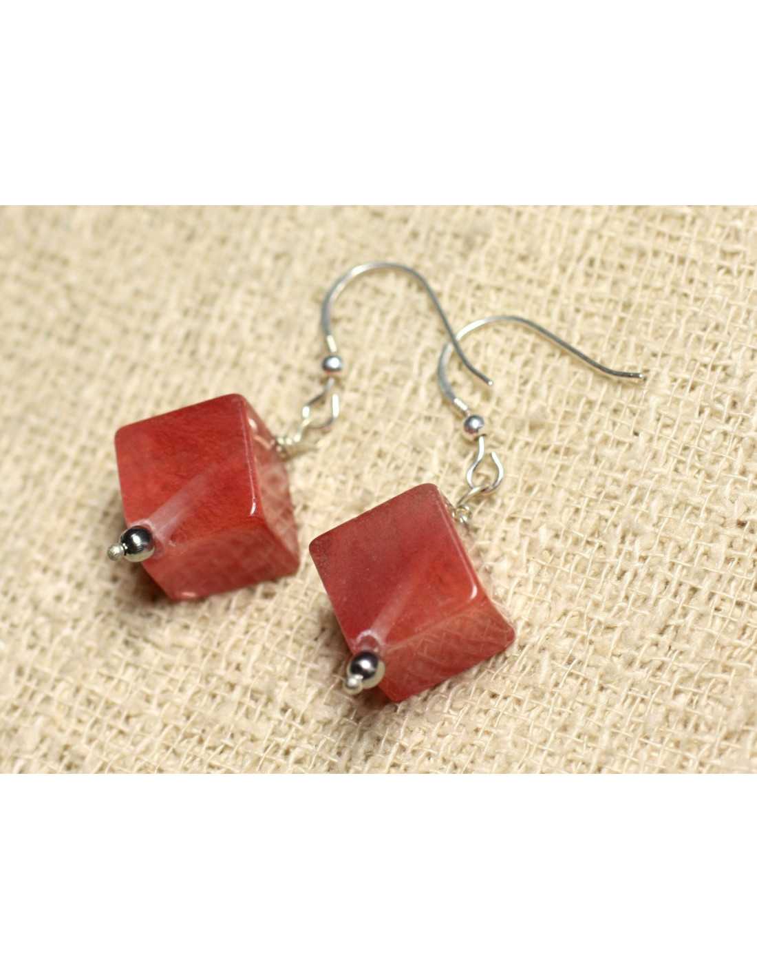 Boucles d'Oreilles Argent 925 et Pierre - Quartz Cerise Cubes 15mm