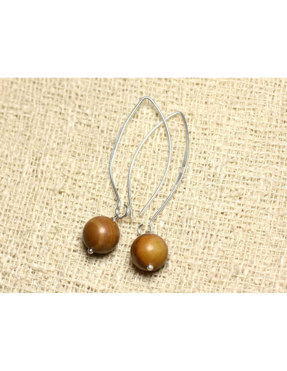Sterling Silver Earrings and Stone Jasper Wood Balls 10mm Natural semi-precious stone Beige, brown color Round beads Dimensions approx. 10mm Sterling Silver Hooks 925/1000