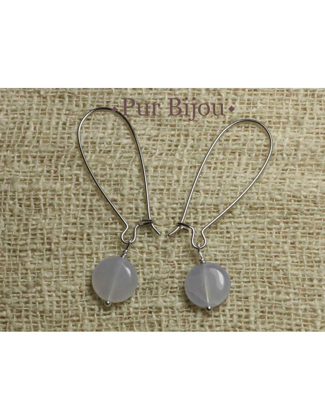 Earrings Silver Metal - Pierre Calcedoine Bleue Palets 10mm