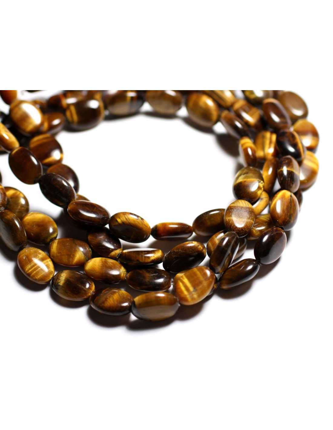 Thread 39cm - Oval Tiger Eye Stone Beads 14x10mm Natural semi precious stone Color brown, black, gold, bronze, with reflections Oval Shape Dimensions Length 14mm x Width 10mm x Thickness 5mm approximately Drilling dimension 1mm approximately Sold by thread of 39cm Approximately 27 beads per thread