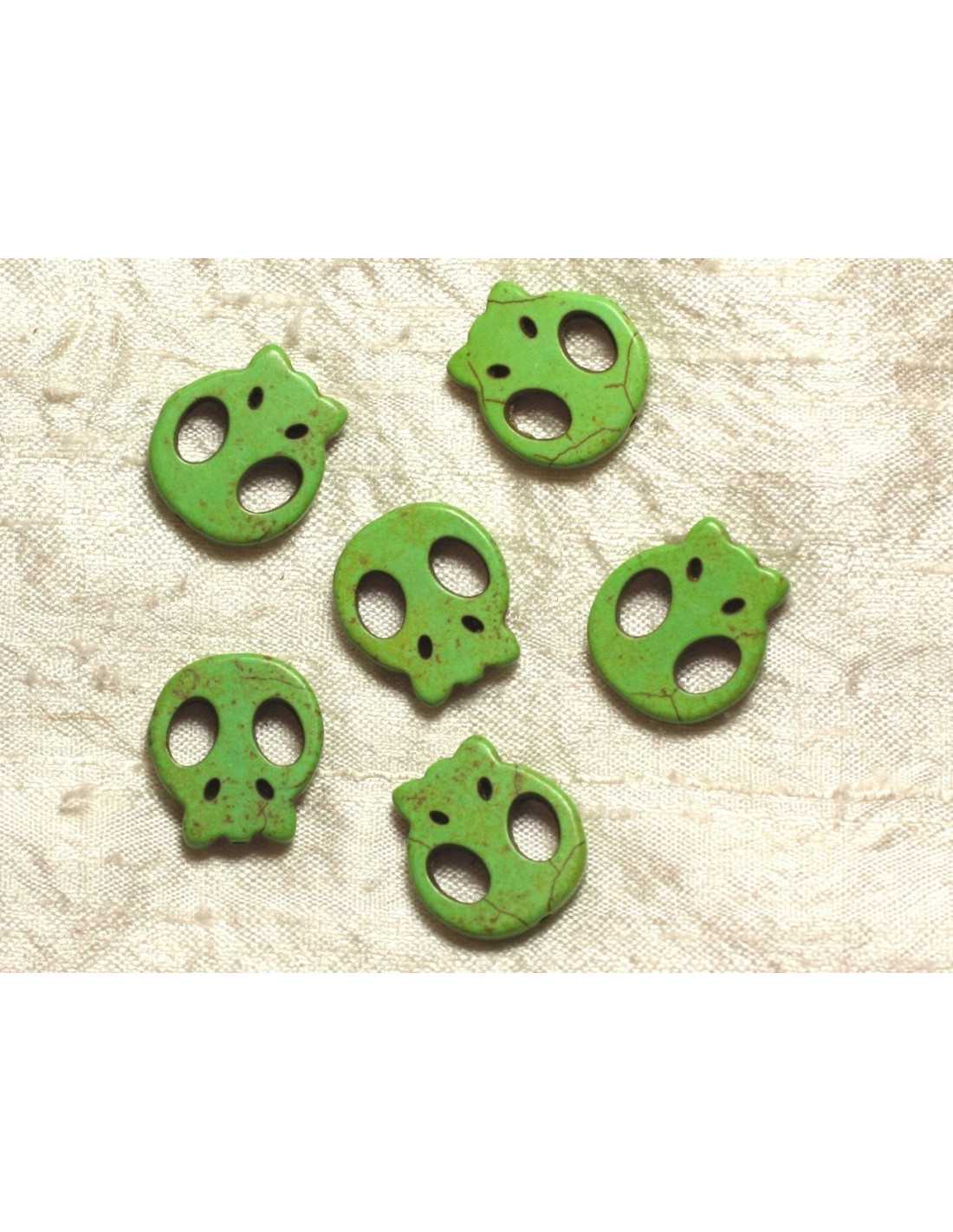Skull Beads Skull Synthetic Turquoise Beads Shape Skulls, Skulls Color Green Dimensions 21 x 20 x 3-4 mm approximately Drilling from top to bottom, Dimension 1.5mm approximately Sold in a bag of 5 beads :) **** * ***** ***** ***** ***** Welcome to 123 pearls! Find in our shop many supplies for all your DIY creations Fast shipping Followed letter delivery from D + 1 or Colissimo 48h (for metropolitan France) Followed letter delivery or Colissimo for the French overseas departments and territories, European Union and World Do not hesitate to contact us with any questions Thank you for your visit! ***** ***** ***** ***** *****
