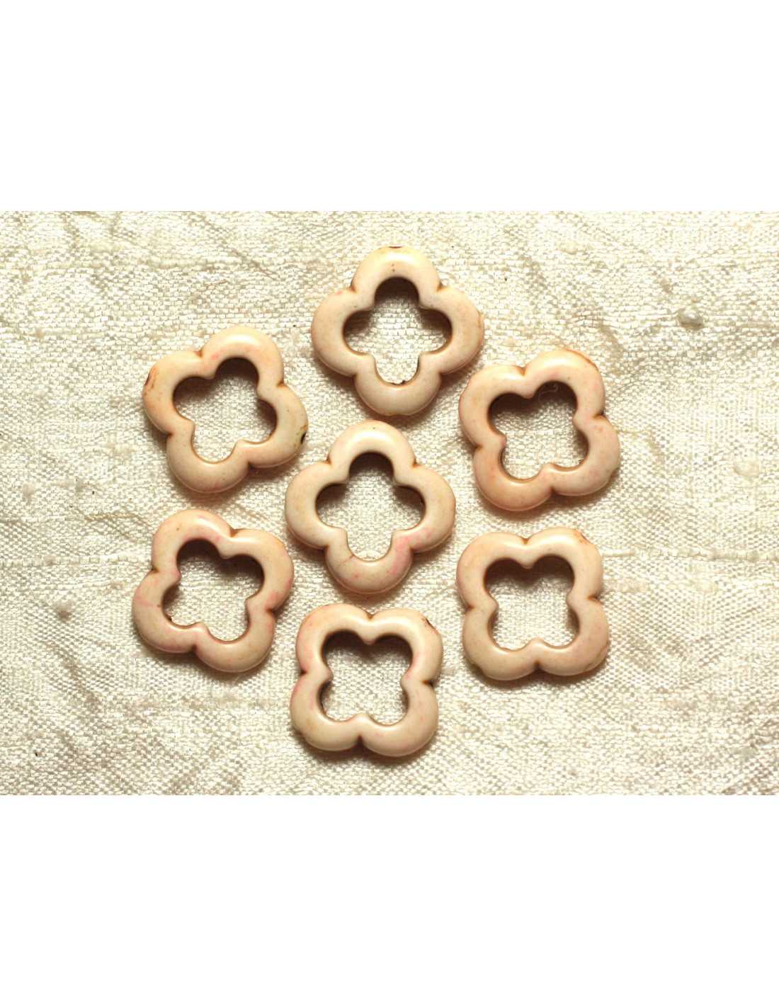 Fil 39cm 18pc env - Perles de Pierre Turquoise Synthèse Fleur Trèfle 4 feuilles 20mm Blanc crème