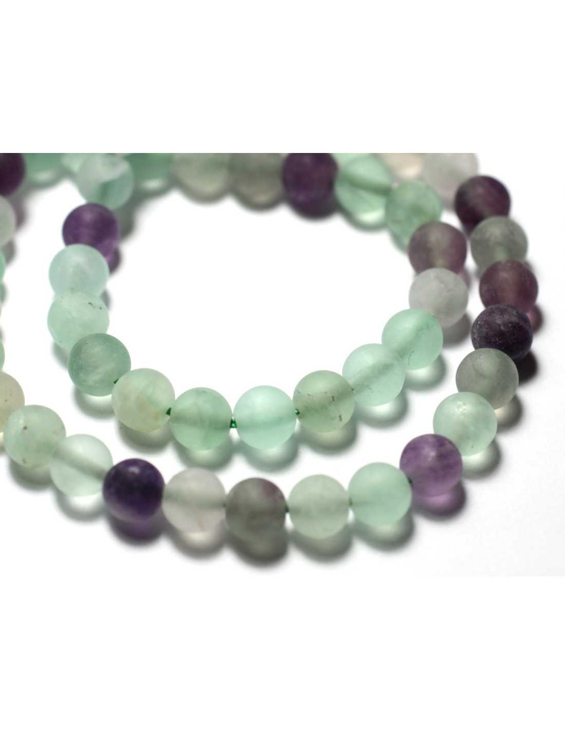 10pc - Stone Beads - Fluorite Multicolored Matte Sanded Frosted Balls 6mm - 7427039730983