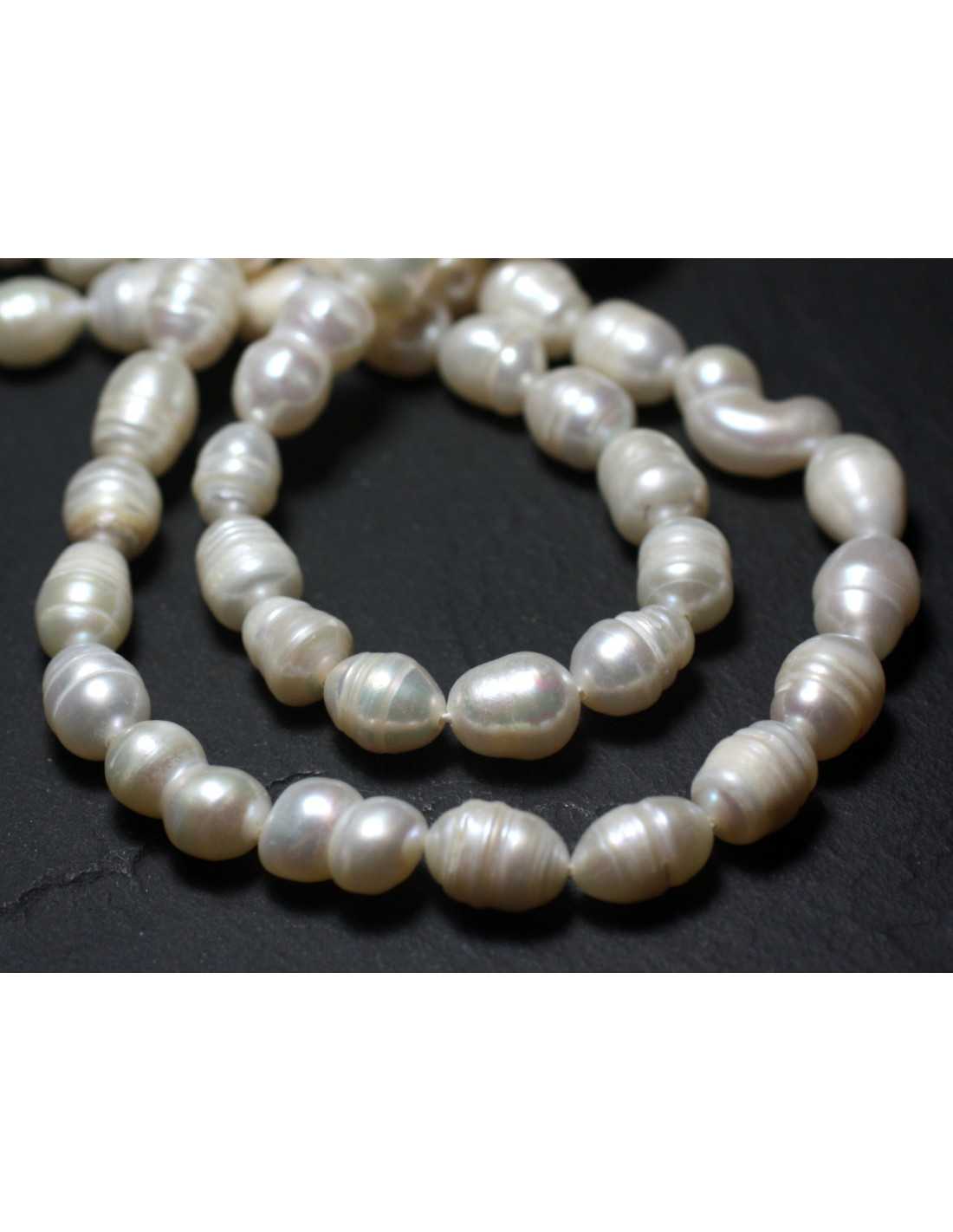 10pc - Perles naturelles culture eau douce Riz Olives Ovales 4-6mm Blanc irisé - 7427039738729