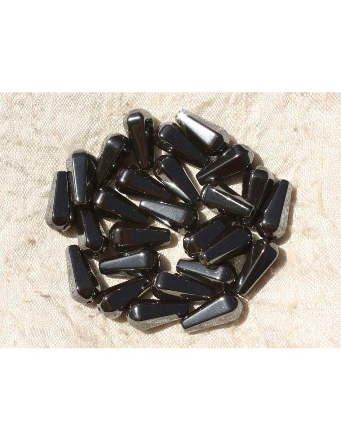 Thread 39cm - Hematite Stone Beads Natural semi-precious stone, metallic Color gray, black Shape faceted drops drilled in the length Dimensions length 16mm x width 8mm approximately Drilling dimension 1mm approximately Sold by thread of 39cm Approximately 23 beads per wire