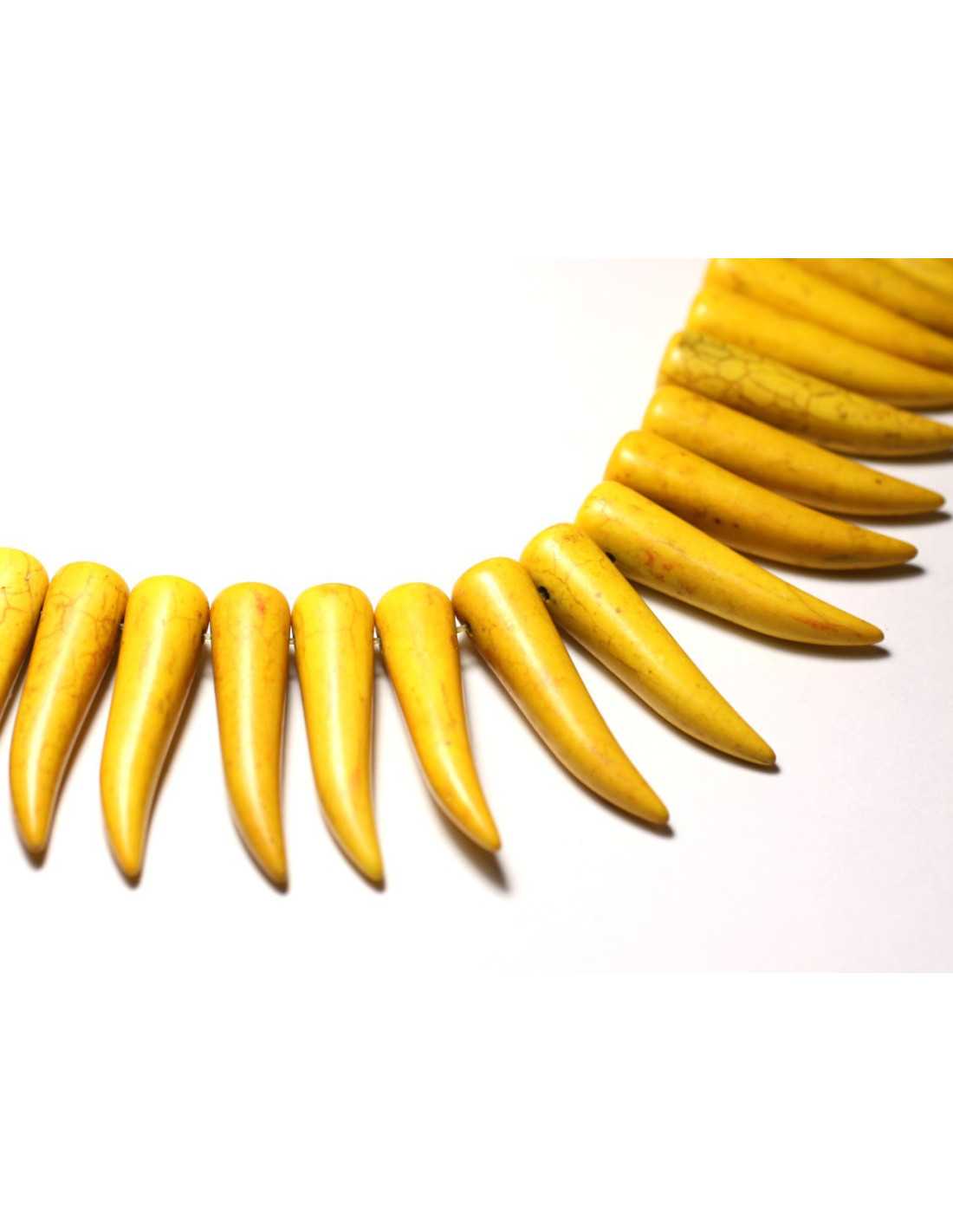 Thread 39cm - Turquoise Stone Beads Synthesis Chilli Pepper Horn Tooth 40mm Turquoise Synthesis reconstituted Color Yellow Shape Chilli Pepper Horn Tooth Dimensions Length 40mm x Width 10mm approximately Drilling in the tip dimension 1mm approximately Sold by wire of 39cm Approximately 39 beads per wire