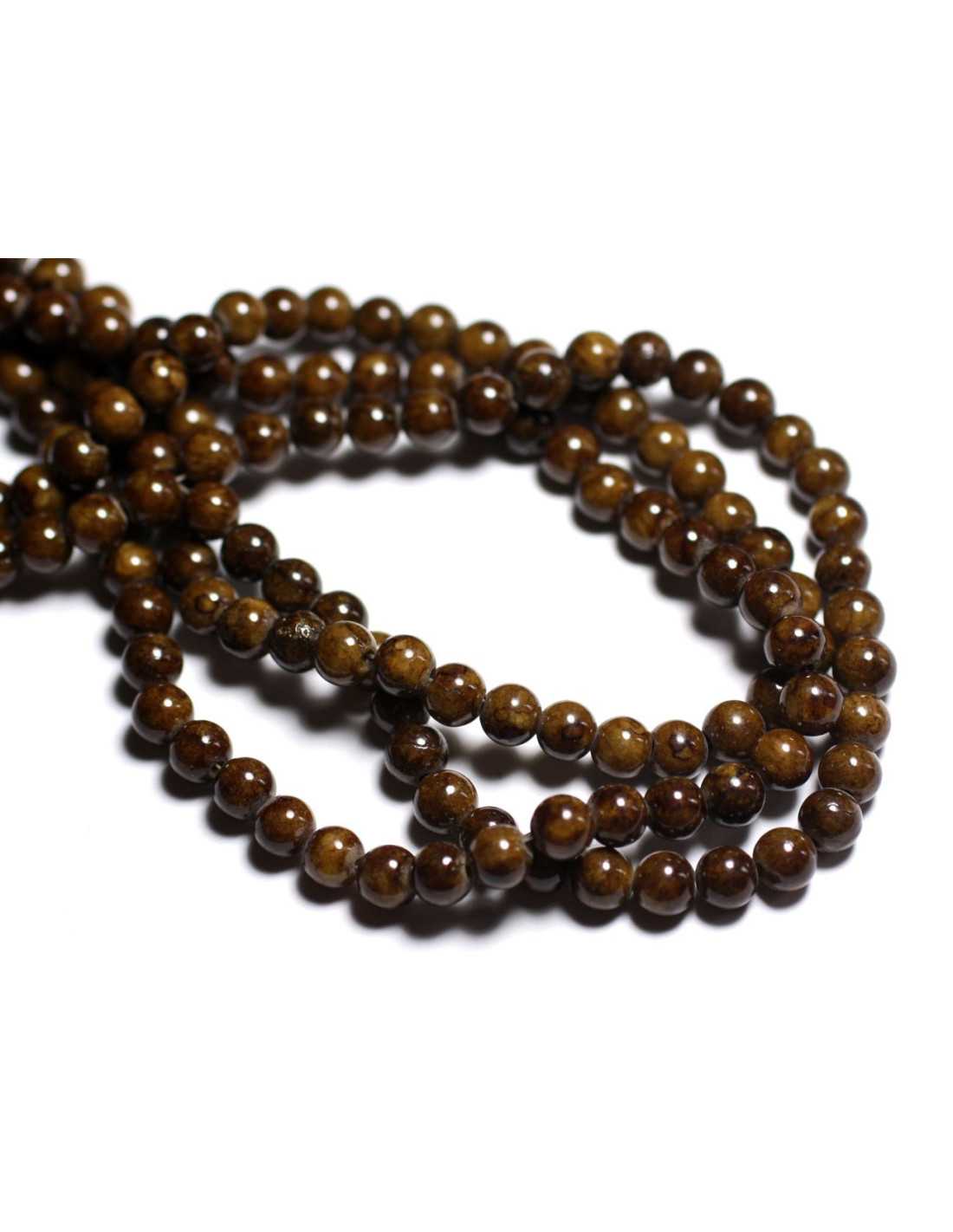 Thread 39cm - Jade stone beads 6mm balls Natural tinted semi precious stone Color brown, ocher Ball shape, round Size 6mm approximately Drilling size approximately 1mm Sold by 39cm thread Approximately 67 beads per thread