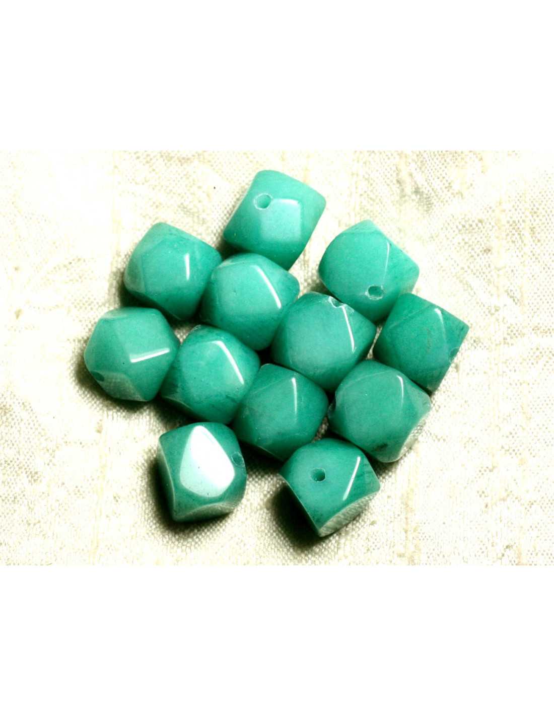 Thread 39cm - Faceted Cubes Jade Stone Beads 14-15mm Natural tinted semi-precious stone Color Green Turquoise Shape Faceted Cubes Dimensions approximately 14-15mm Drilling dimension approximately 1.5mm Sold by strand of 39cm Approximately 25 beads per strand